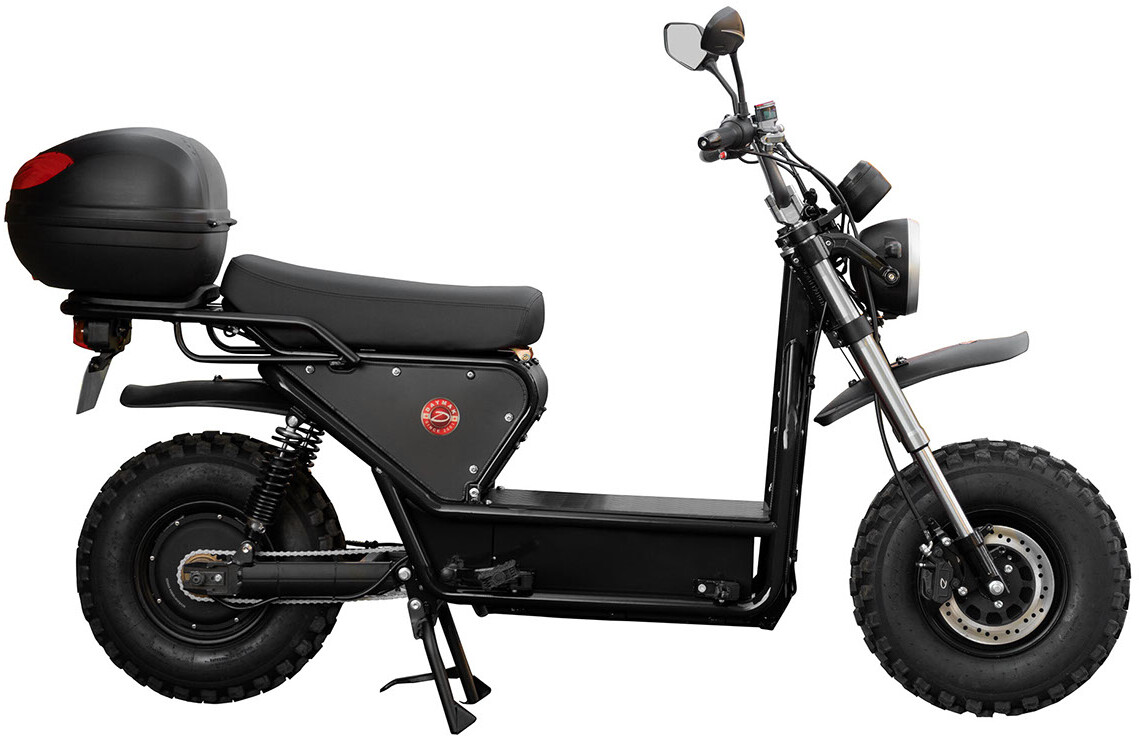 The Beast 2 D is an all terrain electric off-road scooter. The scooter is available in three versions: Standard, Deluxe and D (2WD). The D version is a two wheel drive (2WD) with an extra motor in the front wheel.