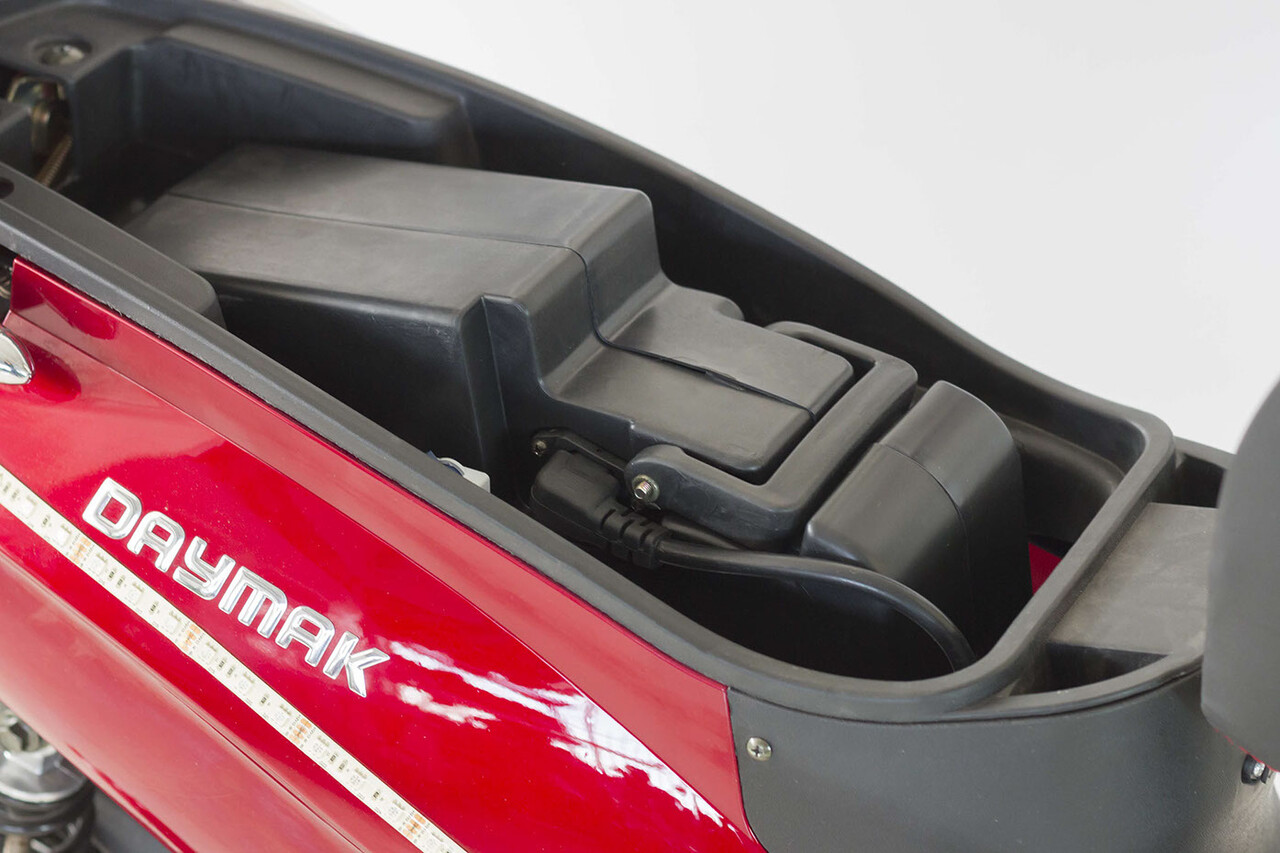 The scooter has a removable 12 एम्पियर घंटा lead acid battery for a range of 40 किलोमीटर.
