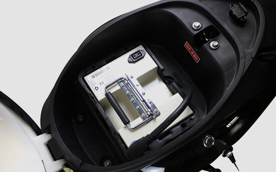The scooter has a removable lithium battery for a range of 60 किलोमीटर. The battery is of high quality and is of the same type as the batteries in the Tesla Model S.